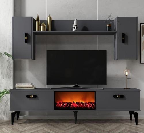 Cantek Dizayn Pluss Şömineli Tv Ünitesi Takımı Antrasit-Antrasit