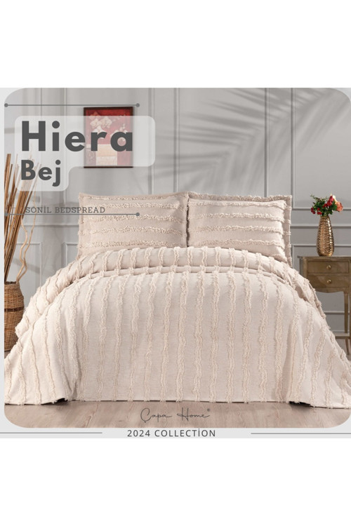 Pratik kullanım için kutulu ambalajda sunulan Hiera şönil çift kişilik yatak örtüsü, kolayca saklanabilir ve taşınabilir