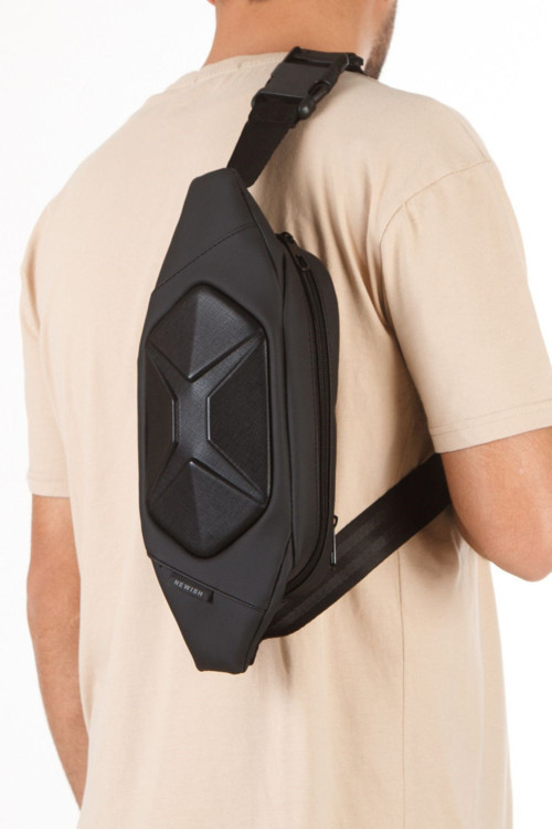 Çapraz Askılı Siyah Bel ve Omuz Çantası.