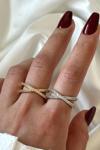 Çapraz Tasarım Zirkon Taşlı Ayarlanabilir Kadın Yüzük