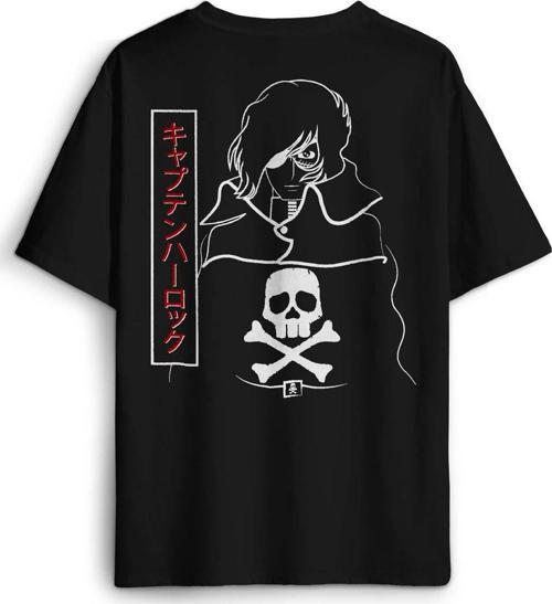 - Captain Harlock Anime Retro Uzay Korsanı Tshirt Baskılı Oversize T-shirt Siyah Unisex Tişört - OVR12S4450