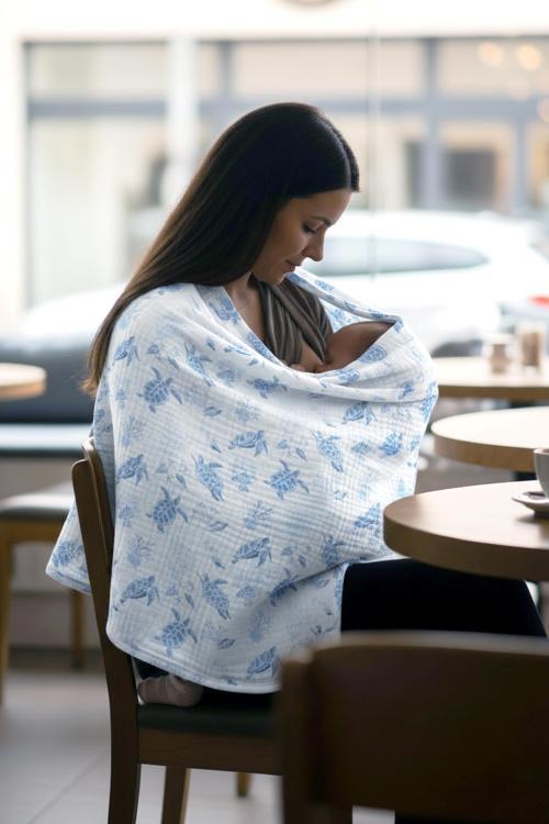 Anneler için özel olarak tasarlanan %100 pamuk, 2 katlı müslin balenli emzirme önlüğü; yumuşak dokusu, nefes alabilen yapısı ve şık baskılarıyla konforlu bir kullanım sunar.