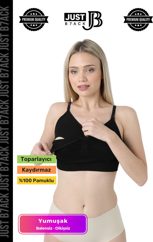 #EmzirmeAtleti Lohusa Doğum Sonrası Balensiz Dikişsiz Klipsli Pamuklu Tam Kalıp Siyah Emzirme Atleti