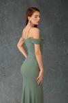 Vals Kadın Drapeli Ay Kollu Krep Kumaş Araboy Abiye Elbise 22-146 Saks - Image 1