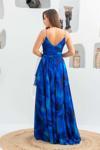 Detay: Göğsü gloplu, maxi boy, astarlı, askılı, çan kalıp, kruvaze yaka, dekoltesiz abiye elbise;