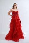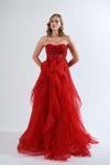Detay: Astarlı (açık renklerde çift kat astar), maxi boy, straplez yaka, prenses kalıp, dekolteli abiye-nişan elbisesi;
