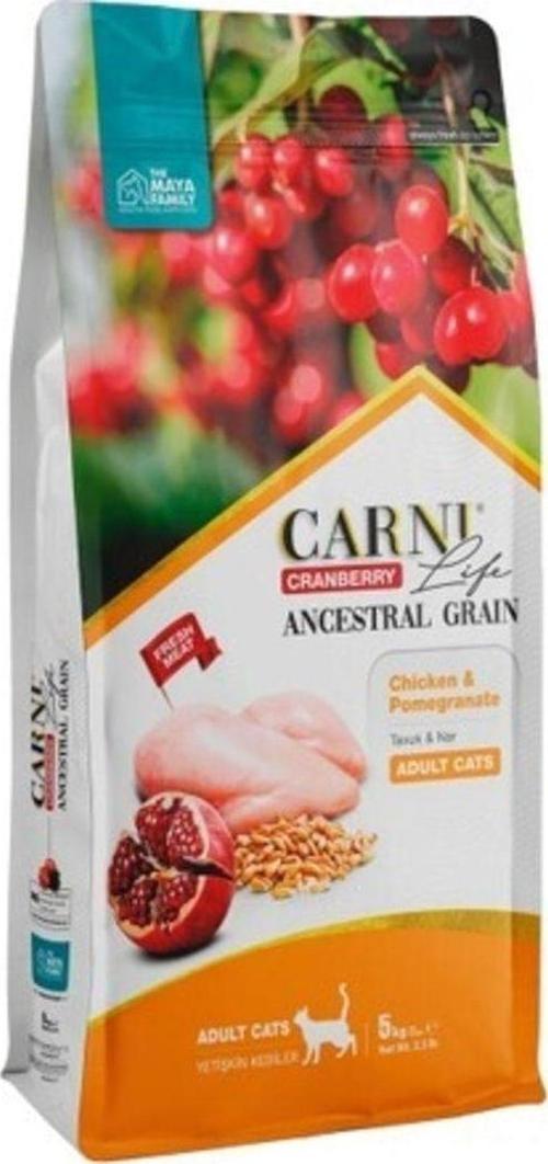 Carni Cat Adult Tavuk/Narlı Kedi Maması 5 KG Taze tavuk eti gibi üstün kaliteli içerikler sayesinde yüksek sindirilebilirliğe sahip Hiper Premium bu formül, yetişkin kedilere özel geliştirilmiştir. Karnivorların doğal beslenme sistemini destekleyen Carni Life Cranberry Ancestral Grain, düşük glisemik indekse sahip kılçıksız buğdayın yanı sıra özenle seçilmiş yüksek miktarda hayvansal protein içermektedir. İçeriğindeki, balık yağı ve meyveler sayesinde bağışıklık sistemini korurken, MOS ile de bağırsak sağlığına katkıda bulunur. Carni Life Cranberry Ancestral Grain, içerdiği kızılcık sayesinde, idrar yolları sağlığının korunmasına yardımcı olur. Maya Family güvencesi ile, tam ve dengeli Hiper Premium Carni Life Cranberry Ancestral Grain ürünleri, tüm seçkin satış noktalarında. İçindekilerKümes hayvanları protein unu (%20), taze tavuk eti %20 , kılçıksız buğday (%17), kurutulmuş tavuk eti (%10), doğal ekstrakte bezelye unu, yulaf, kümes hayvanları yağı, hidrolize kümes hayvanı ciğeri, pancar küspesi lifi, kurutulmuş yumurta, balık yağı (%1,5), bezelye lifi, kuru kızılcık (%0,5), kuru nar (%0,5), kuru havuç (%0,5), mannan oligosakkaritler (MOS) (%0,1), taurin (%0,1), L karnitin, inülin Besleyici İlavelerRetinil asetat olarak A Vitamini (25000 IU/Kg), kolekalsiferol olarak D3 vitamini (700 IU/kg), bütün rac-alfa tokoferol asetat olarak E vitamini, K vitamini, niasin, C vitamini, kalsiyum pantotenat, B1 vitamini, riboflavin, B6 vitamini, tiamin, folik asit, biotin, B12 vitamini, kolin klorür, kalsiyum iyodat (1,5 mg/kg), demir (II) sülfat monohidrat (180 mg/kg), çinko sülfat monohidrat (60 mg/kg), mangan sülfat monohidrat (15 mg/kg), bakır (II) sülfat pentahidrat (5 mg/kg), organik selenyum (0.05 mg/kg) Analitik Değerler Ham Protein-%36-Ham Yağ %20-Ham Kül %7.5-Ham Lif %3-Nem %7 Enerji Değeri:4150 kcal/kg Beslenme Tablosu Kedi Ağırlığı/kg 2 kg 2,5 kg 3 kg 3,5 kg 4 kg 5 kg 6 kg 7 kg Günlük Miktar 29-38 gr 33-45 gr 38-50 gr 42-56 gr 46-61 gr 53-71 gr 60-80 gr 67-89 gr Günlük beslenme tablosu gösterge niteliğindedir ve günlük beslenme miktarı, kedinizin kilosunun yanı sıra