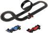 Bir güç adaptörü ve iki araba (kırmızı ve mavi) içerir.