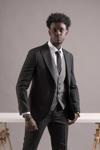Carutte Slimfit Sivri Yaka Çift Pileli Dokulu Kumaş Yelek Kombinli Takım Elbise