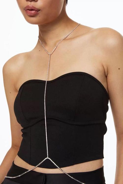 Caş Dekorasyon Gümüş Renk Taşlı Bikini Üstü/ Vücut Aksesuarı - Image 1