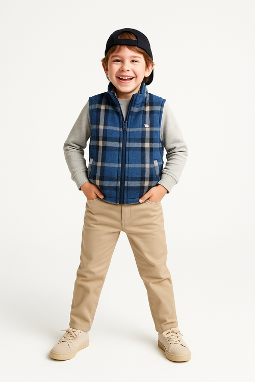 Kalın astarlı yeleği, Sweatshirt ve Gabardin Pantolonuyla Benzersiz bir Takım.