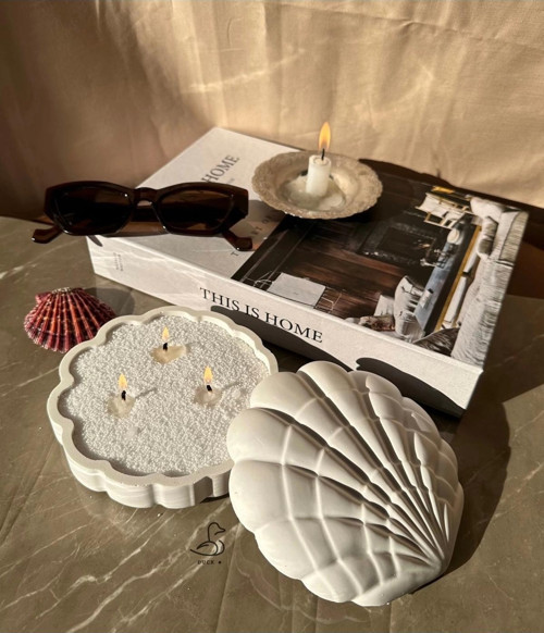 İstiridye Görünümlü Kapaklı İnci Tozlu Mumluk | Casa di Duck