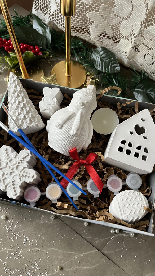• Casa di Duck tasarımı özel yılbaşı boyama kutusu: Kar tanesi, çam ağacı, kardan adam, yıldız detaylı figürler, mini ev obje ve dekoratif figürlerden oluşan 6’lı premium set.