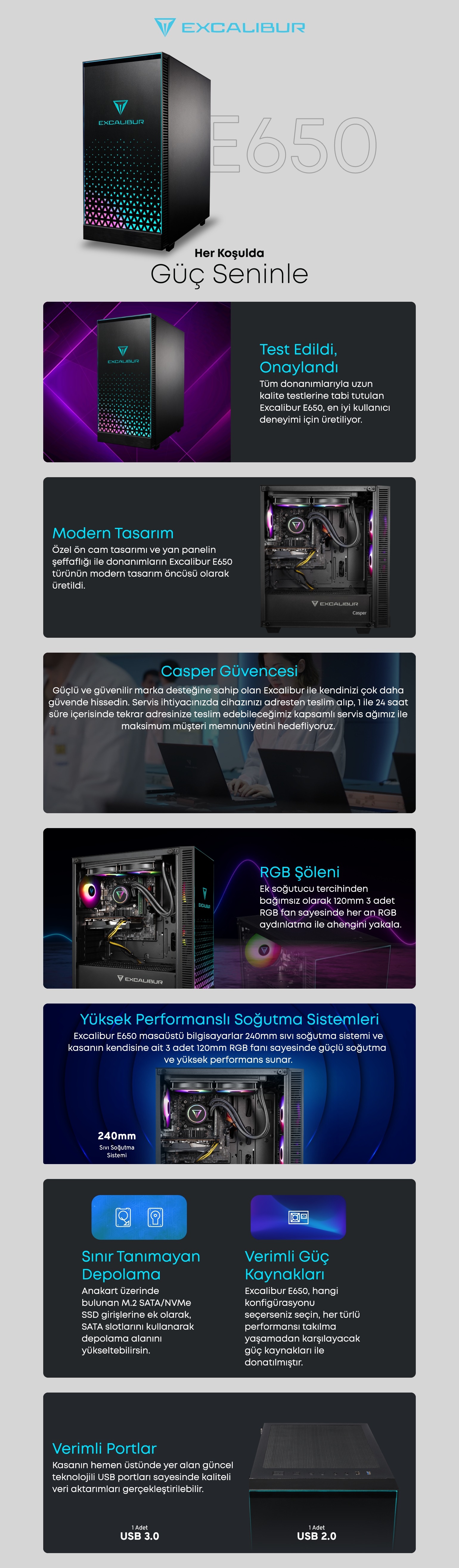 Casper Excalibur E65Z.285K-EXT0X-0RG Series 2 Intel Core Ultra 9-285K 64GB RAM 2TB SSD NVIDIA Geforce RTX 5060TI Freedos