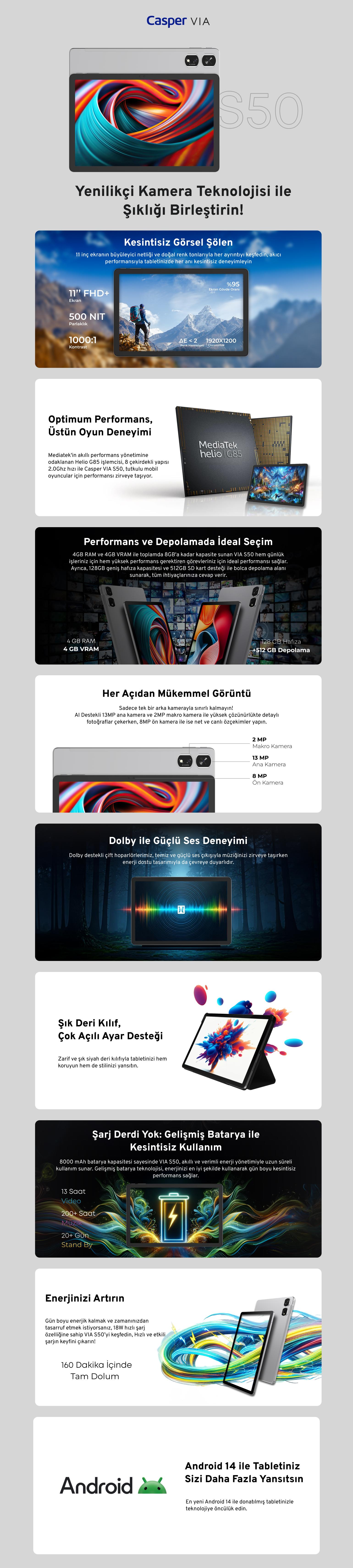Casper Via S50 128 GB 11" Tablet + Kilif