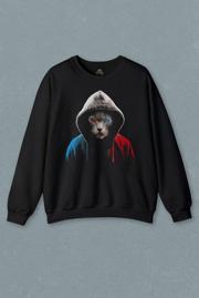 So Cool Cat Trabzon Kedisi Bordo Mavi Baskılı Sweatshirt