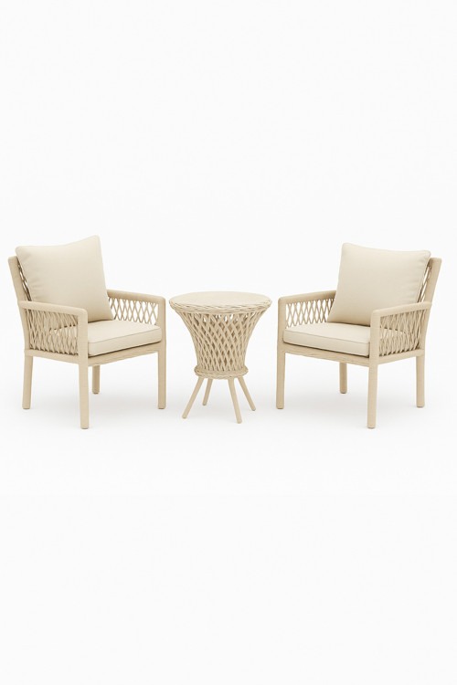 - Modern tasarımıyla dikkat çeken Alya Raddan 1+1 Bistro Set, balkonunuzu veya bahçenizi şık bir yaşam alanına dönüştürür.