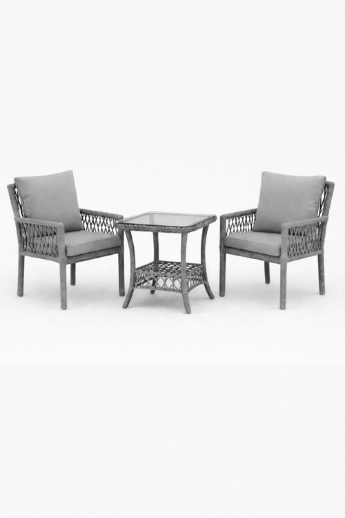 Çavdar Group Oslo Raddan 1+1 Bistro Set Minderli 2 Kişilik Raddan Oturma Grubu Camlı Sehpa Bahçe Balkon Teras Set