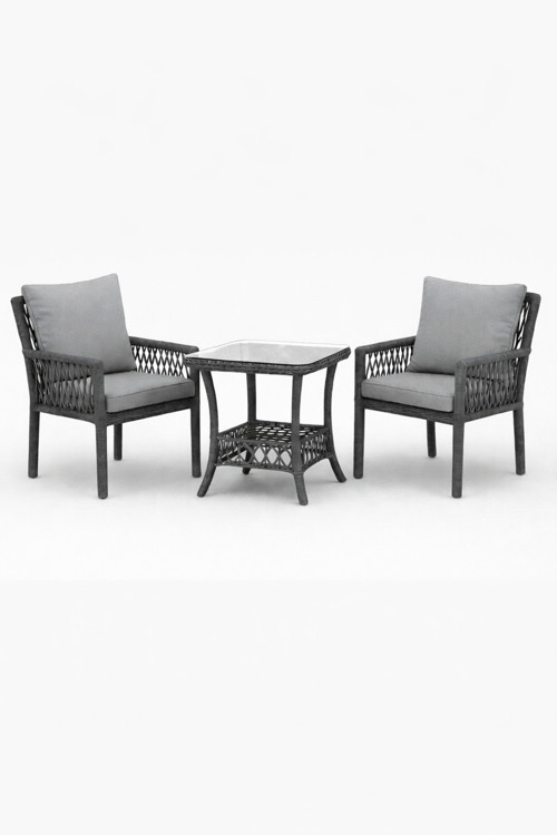 Çavdar Group Oslo Raddan 1+1 Bistro Set Minderli 2 Kişilik Raddan Oturma Grubu Camlı Sehpa Bahçe Balkon Teras Set