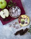 Tek bir şekerde iki farklı meyvenin lezzetli kontrastını keşfedin. Topraksı bir notayla olgun Frenk üzümü meyvesi dışarıdayken, ekşi bir notayla aromatik Elma meyvesi iç dolgudur. Birlikte daha önce hiç deneyimlemediğiniz gibi ferahlatıcı bir tatlılık ve asidite dengesi yaratırlar. Gerçek meyve sularıyla yapılan Double Fruit Drops, pudra şekeriyle tozlanır ve en yüksek kalitede tazelik için birinci sınıf altın renkli bir teneke kutuda muhafaza edilir.