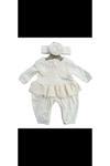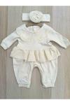 Takımın tamamlayıcısı olan çiçek detaylı saç bandı ise bebeğinizin kombinini mükemmel şekilde tamamlar.