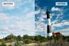 yok eder. Polarize edilmiş ışığın çıkarılması, gerçek doymuş rengi ortaya çıkararak beyaz bulutların daha kontrastlı ve