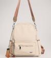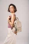 Unisex Suya Dayanıklı Krinkıl Kumaş Çok Gözlü Krem Laptop Okul Ve Sırt Çantası - Image 1