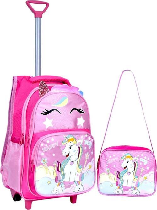 Çantaland Çekçekli Pembe Unicorn Baskılı, Ortopedik Sırt Özellikli, İlkokul Çantası + Beslenme Çantası