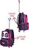 Çantaland Çekçekli Siyah Panda Baskılı, Ortopedik Sırt Özellikli, İlkokul Çantası + Beslenme Çantası
