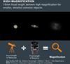 - Gözlüklü veya gözlüksüz rahat görüş için geniş 16 mm göz rahatlığı ve katlanabilir kauçuk gözlük