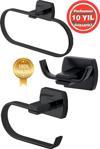 Çelik Banyo Paslanmaz Pirinç Mat Siyah Milano Banyo Aksesuar Set Havluluk-Bornozluk-Tuvalet Kağıtlık