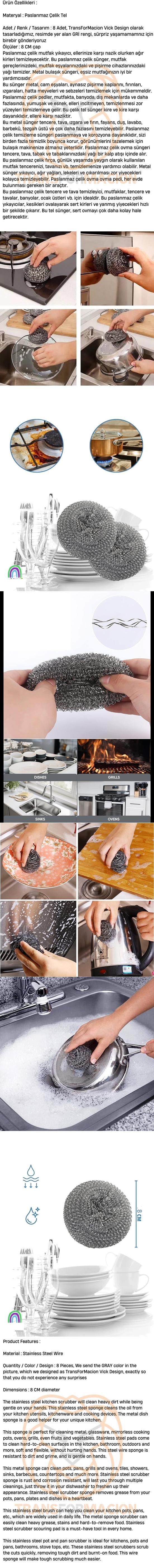 Paslanmaz çelik mutfak yıkayıcı, ellerinize karşı nazik olurken ağır kirleri temizleyecektir. Bu paslanmaz çelik sünger, mutfak gereçlerinizdeki, mutfak eşyalarınızdaki ve pişirme cihazlarınızdaki yağı temizler. Metal bulaşık süngeri, eşsiz mutfağınızın iyi bir yardımcısıdır.