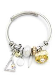 Çelik Charmlı İncili Deniz Kabuğu Bilezik - Beyaz