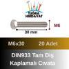 Çelik Cıvata 6X30 DIN933 Beyaz 20 Adet 8.8 Altıköşe