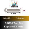Çelik Cıvata 8X10 DIN933 Beyaz 10 Adet 8.8 Altıköşe