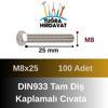 Çelik Cıvata 8X25 DIN933 Beyaz 100 Adet 8.8 Altıköşe