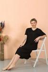 Celira Kadın Kısa Kol Diz Altı Over Size Siyah Ev Elbisesi - Geceliği 93410