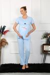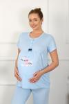 Kadın Kısa Kol Hamile Lohusa Pijama Takımı Mavi 45210