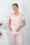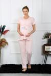 Kadın Kısa Kol Hamile Lohusa Pijama Takımı Pudra 45210