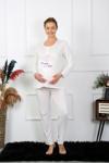 Kadın Uzun Kol Hamile Lohusa Pijama Takımı Ekru 45501