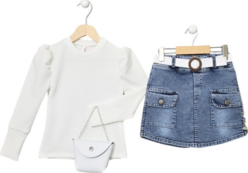 Mavi Kot Şort Etek Kazayağı Kız Çocuk Takım 1025