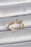 Pirinç Gold Renk Ayarlanabilir Zirkon Taşlı Kelebek Model Kadın Yüzük NS3043