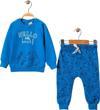 Full Star Nakışlı Şapkalı Uzun Kollu Sweat 3lü Erkek Bebek Takımı Mavi - Image 1