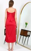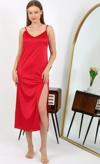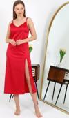 Celira Yırtmaçlı Uzun Saten Gecelik Kırmızı 7410