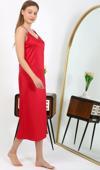 Yırtmaçlı Uzun Saten Gecelik Kırmızı 7410