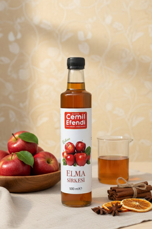 %100 Doğal yöntemlerle üretilmiş Katkısız içilebilir Elma sirkesi Cam şişe 500ml Geleneksel doğal fermantasyon yoluyla üretilmiştir.