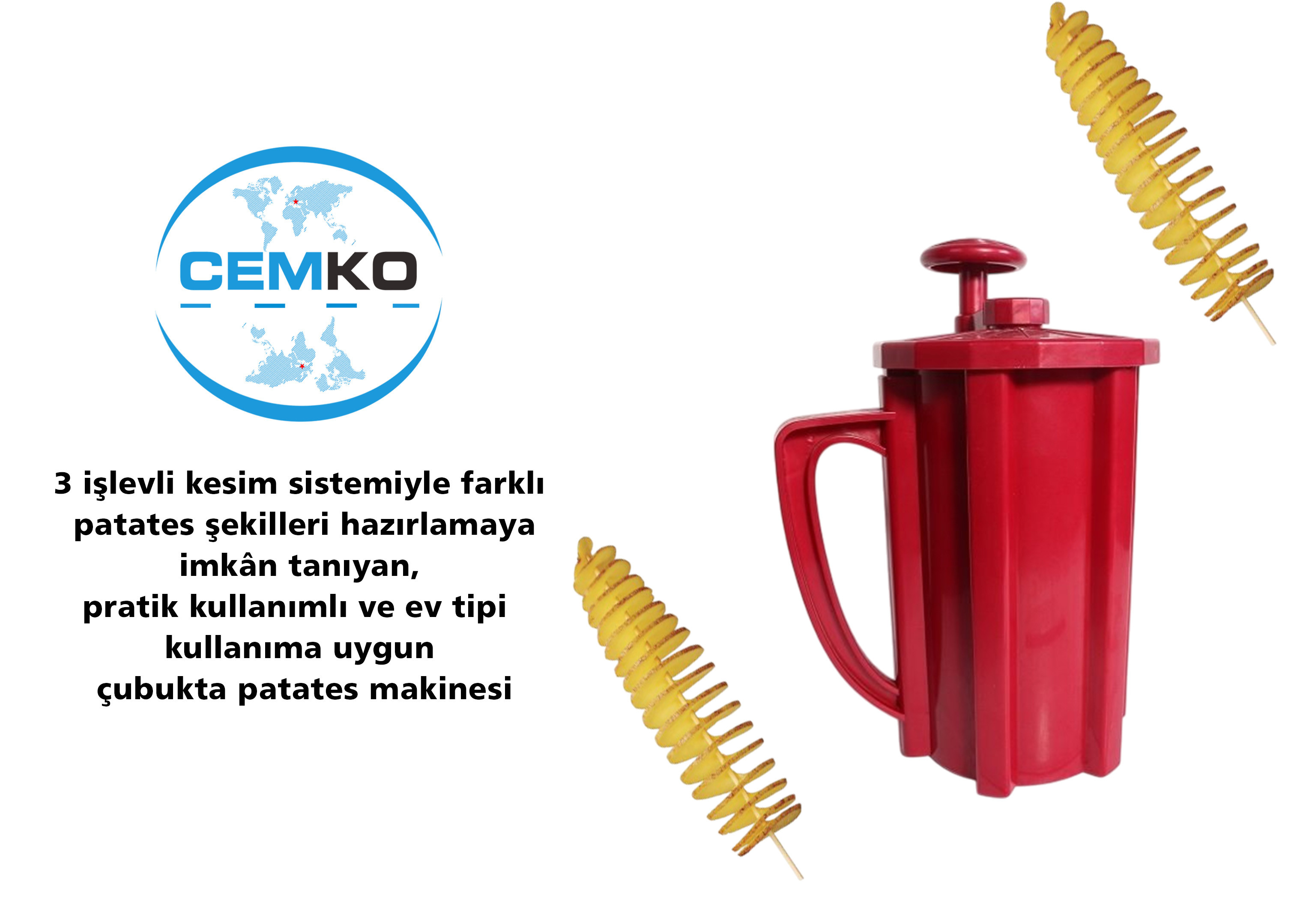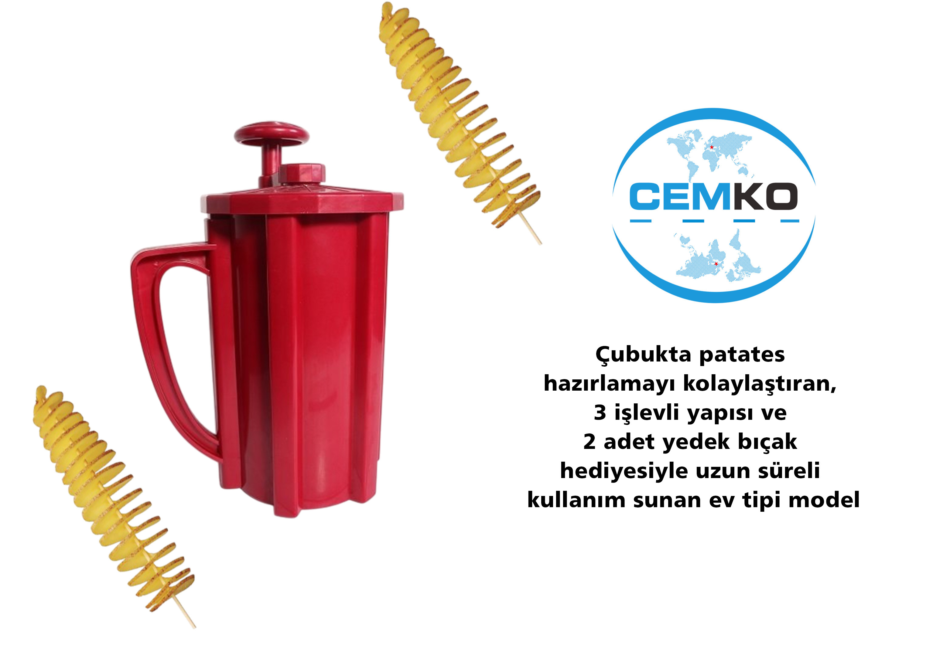 Cemko Çubukta Patates Makinası 3 Işlevli 2 Adet Yedek Bıçak Hediyeli Ev Tipi Model
