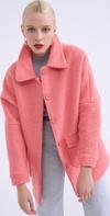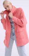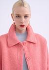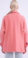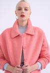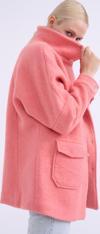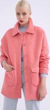 Gizli pat, uzun düğme kapamalı kol, astarlı, kapaklı cep, oversize, buklet kaban.