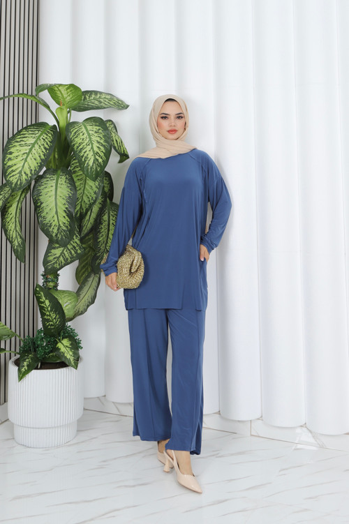 Cepli modern tunik ve geniş paça pantolon tasarımı