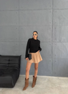 Yeni sezonda trend olan cepli triko kazak siyah rengiyle öne çıkıyor. Hem şık hem de kullanışlı olan bu kazak, gardırobunuzun vazgeçilmezi olmaya aday. İnce triko kumaşı sayesinde hafif ve rahattır.